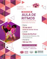 A Prefeitura de Santa Fé do Sul, por meio da Secretaria Municipal de Assistência Social, anuncia o retorno das aulas de ritmos na Casa da Mulher Paulista. A atividade é gratuita e será conduzida pela professora Gabriele Ferreira, oferecendo um momento de bem-estar, integração e incentivo à prática de atividade física. As aulas começarão na ... leia mais