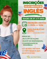 PREFEITURA DE NOVA CANAÃ PAULISTAESTÁ COM INSCRIÇÕES ABERTAS PARA AULAS GRATUITAS DE INGLÊS