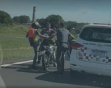 Um policial militar foi flagrado agredindo um jovem de 18 anos durante uma abordagem na Rodovia Marechal Rondon, entre Coroados e Birigui, nesta terça-feira (9). Na imagem feita por um motorista, é possível ver que o policial emparelha o condutor. Mesmo quando o jovem coloca as mãos no capacete, os policiais militares empurram a moto ... leia mais