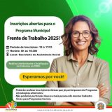 TERMINAM NA SEXTA-FEIRA AS INSCRIÇÕES PARA O PROGRAMA MUNICIPAL FRENTE DE TRABALHO 2025 DE SANTA CLARA D’OESTE