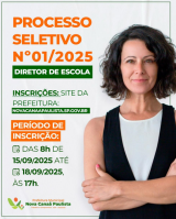 PREFEITURA DE NOVA CANAÃ PAULISTA LANÇA EDITAL PARA O PROCESSO SELETIVO PARA DIRETOR ESCOLAR